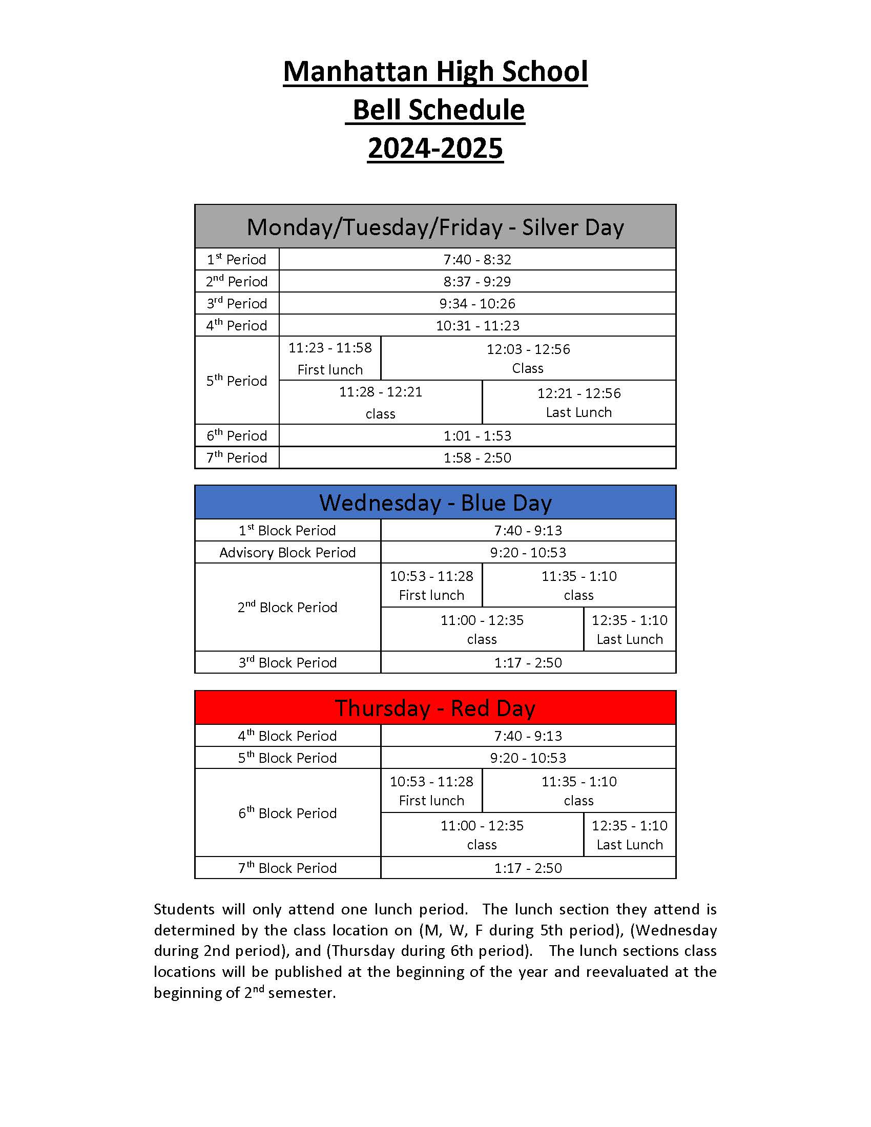 - Half day – 7:40 a.m. – 10:55 a.m.